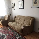 2, Мебель: раскладной диван-книжка (2 спальных места), шкаф-купе, кухонная мебель, кроме обеденного стола и стульев. Бытовая техника: сплит, холодильник, газовая печь, стиральная машинка-автомат, утюг. Телевизора нет. Сантехника новая. Палас на фото другой! Подключены интернет, домофон.
